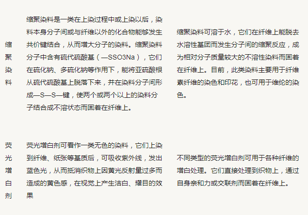 二、上色的能力。也就是與紡織材料有一定的結(jié)合力,即親和力或直接性;